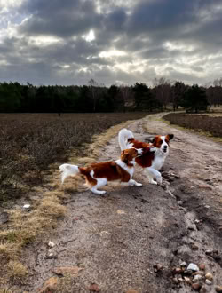 Wiedersehen mit C-Wurf-Papa Eames. Der Spaziergang in der Heide war sehr gelungen. Lilli konnte mit ihrem Papa ausgiebig toben.
