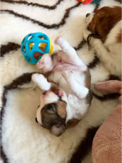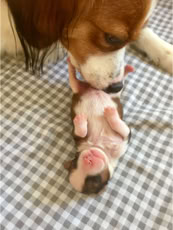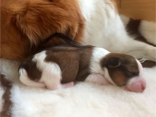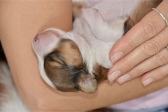 Ayla brachte in den frühen Morgenstunden eine kleine Hündin zur Welt. Wir sind sehr glücklich darüber, dass die Geburt diesmal wieder ohne Komplikationen verlief. Ayla hat sich sehr schnell von der Geburt erholt und kümmert sich instinktsicher und sehr fürsorglich um ihr Einzelkind. Am Anfang passiert außer trinken und schlafen nicht viel. Es macht großen Spaß dem fröhlichen Schmatzen der Kleinen zu zuhören.