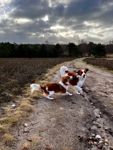 Wiedersehen mit C-Wurf-Papa Eames. Der Spaziergang in der Heide war sehr gelungen. Lilli konnte mit ihrem Papa ausgiebig toben.