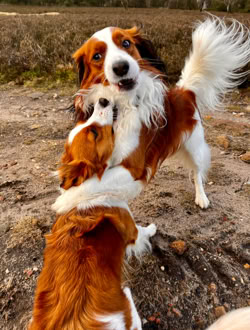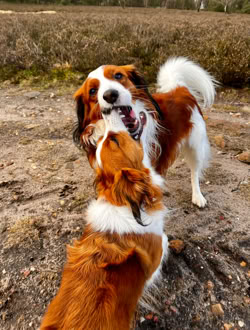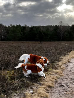 Wiedersehen mit C-Wurf-Papa Eames. Der Spaziergang in der Heide war sehr gelungen. Lilli konnte mit ihrem Papa ausgiebig toben.