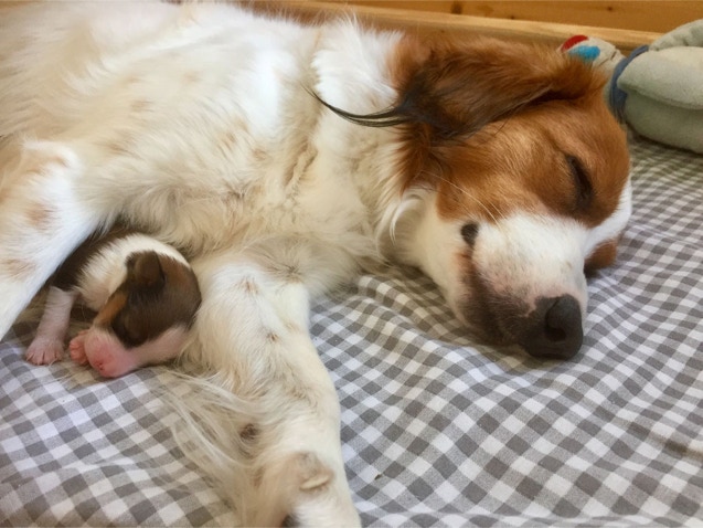 Ayla brachte in den frühen Morgenstunden eine kleine Hündin zur Welt. Wir sind sehr glücklich darüber, dass die Geburt diesmal wieder ohne Komplikationen verlief. Ayla hat sich sehr schnell von der Geburt erholt und kümmert sich instinktsicher und sehr fürsorglich um ihr Einzelkind. Am Anfang passiert außer trinken und schlafen nicht viel. Es macht großen Spaß dem fröhlichen Schmatzen der Kleinen zu zuhören.